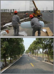 工程概述:吳江市公路改造項(xiàng)目包括震南新路1986m寬度7.8m和盛南線(xiàn)1842m寬度為7.0m。設(shè)計(jì)方案是用粒徑為9.3-13.2mm的碎石集料和橡膠瀝青攤鋪,進(jìn)行1cm厚的應(yīng)力吸收層施工。該項(xiàng)目以建設(shè)“平安公路”為目標(biāo),不斷提高農(nóng)村公路的安全保障水平,為群眾出行提供安全可靠的通行環(huán)境。因地制宜加寬了部分道路,推進(jìn)公交一體化,路、站、運(yùn)同步發(fā)展。該項(xiàng)目完成后得到群眾一致的贊譽(yù)聲。