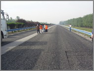 在本工程中我公司承擔(dān)了橡膠瀝青應(yīng)力吸層的施工,共攤鋪橡膠瀝青應(yīng)力吸收層3.5萬(wàn)平方米,施工質(zhì)量得到業(yè)主好評(píng)。